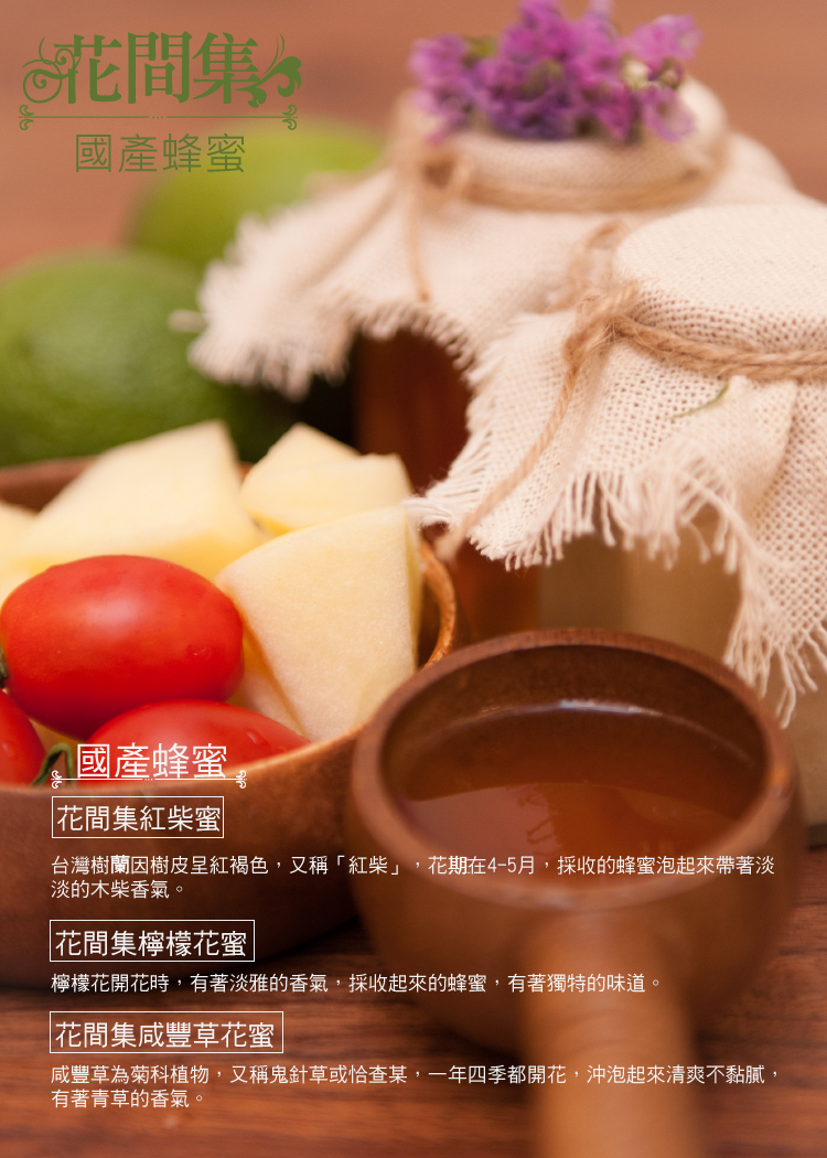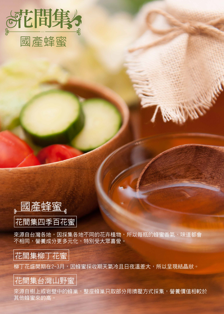 來源自台灣各地,因採集各地不同的花卉植物,所以每瓶的蜂蜜香氣、味道都會不相同,營養成分更多元化,特別受大眾喜愛。