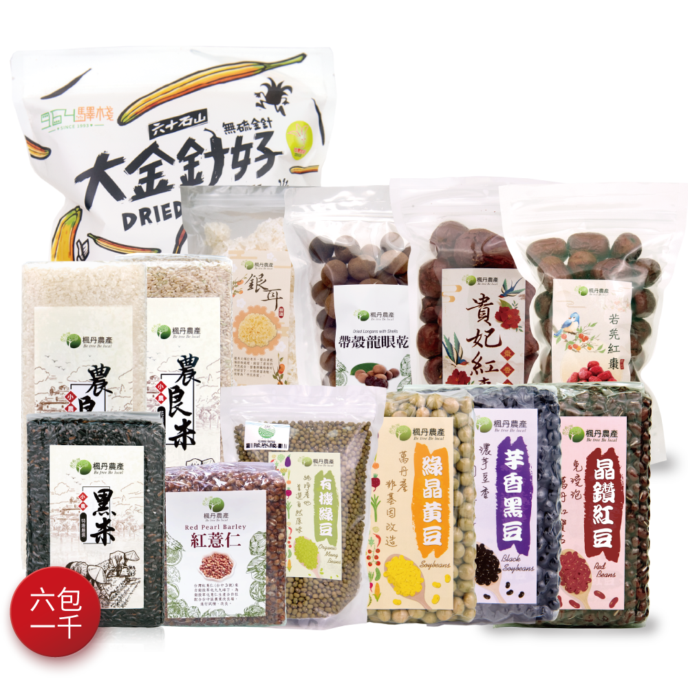 | 第六種口味 | 農良米(糙米), 農良米(白米), 黑米, 紅薏仁, 有機綠豆, 晶鑽紅豆, 芋香黑豆, 綠晶黃豆, 無硫金針, 帶殼龍眼乾 |