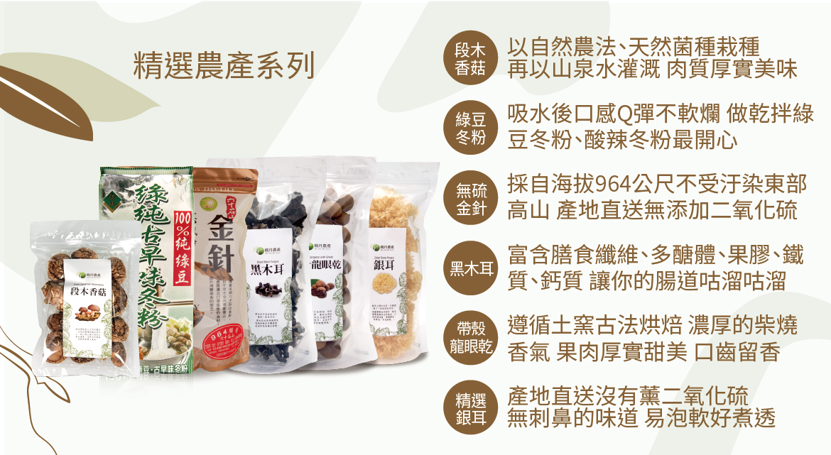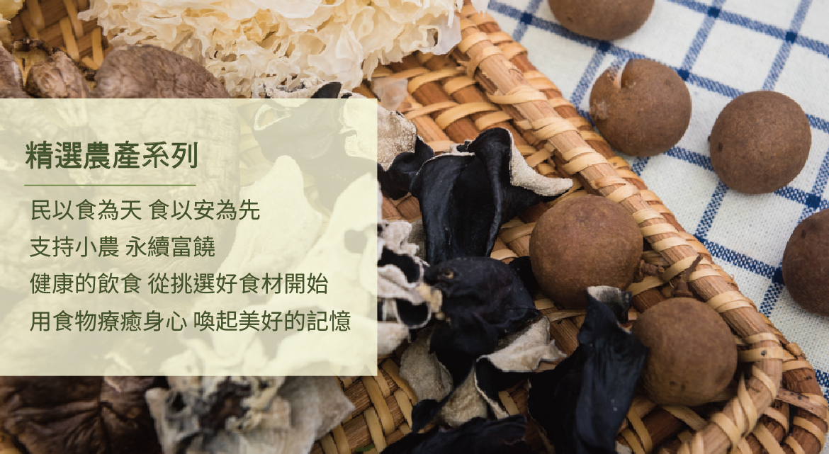 精選農產系列: 帶殼龍眼乾、無硫金針、若羌紅棗、貴妃紅棗