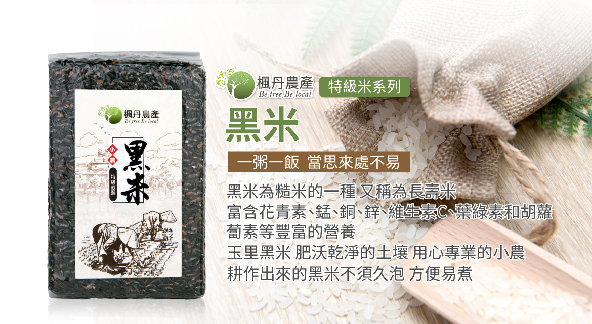 黑米為糙米的一種,又稱為長壽米,富含花青素、錳、銅、鋅、維生素C、葉綠素和胡蘿蔔素等豐富的營養,為養生達人家中必備。